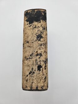Perkamenten band gedeeltelijk zwart geverfd. Achterin zit een titellijst met de de door Joh. Ribbius uitgegeven boeken.