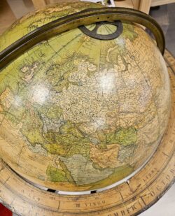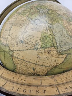 A fine and impressive terrestrial library globe, more than a hundred years old, with the known world in the middle of the 19th century.