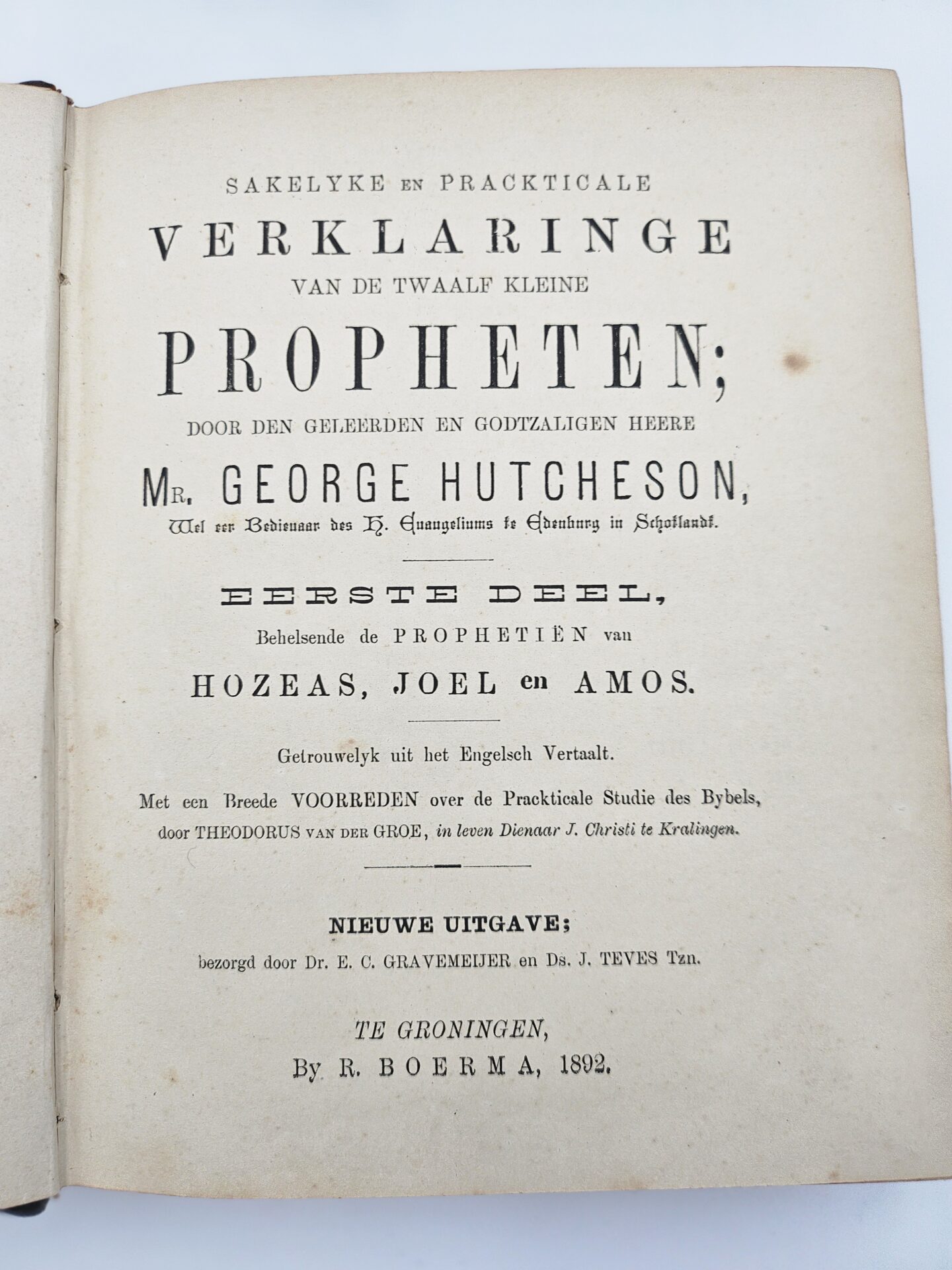 Sakelyke en Prackticale Verklaringe van de twaalf Kleine Propheten. Eerste Deel, behelsende de Prophetien van Hozeas, Joel en amos. Tweede Deel, behelsende de Prophetien van Obadja, Jona, Micha, Nahum, Habakuk, Zephanja, Haggai, Zacharia, Maleachi.