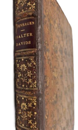 A rare Dutch edition of Bugenhagen’s Latin Psalter with Bucer’s German translation and commentary, richly illustrated and furnished with glosses, summaries, and concordances. Contains the complete Book of Psalms, each with Latin exposition, German translation, and practical devotional use. Includes summaries, prayers, and a “Heilige Schrift Concordantien”, a singularly detailed scripture reference apparatus. Fine, gold-tooled spine. Loss of three letters on the title shield, blank pages at the end of the summary, and at the end of the book are missing. A superb copy in an 18th-century binding, mottled calf with a fine decorated spine and marbled endpapers. Johannes Bugenhagen (1485–1558), known as “Doctor Pomeranus,” was Martin Luther’s pastor in Wittenberg and organizer of the Reformation in northern Germany and Scandinavia. His Interpretatio Psalmorum (Latin, 1524) became a foundational psalm commentary praised by Luther himself. Martin Bucer (1491–1551), a prominent reformer of Strasbourg, made the German translation from Hebrew influenced by Bugenhagen’s Latin original.