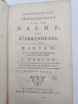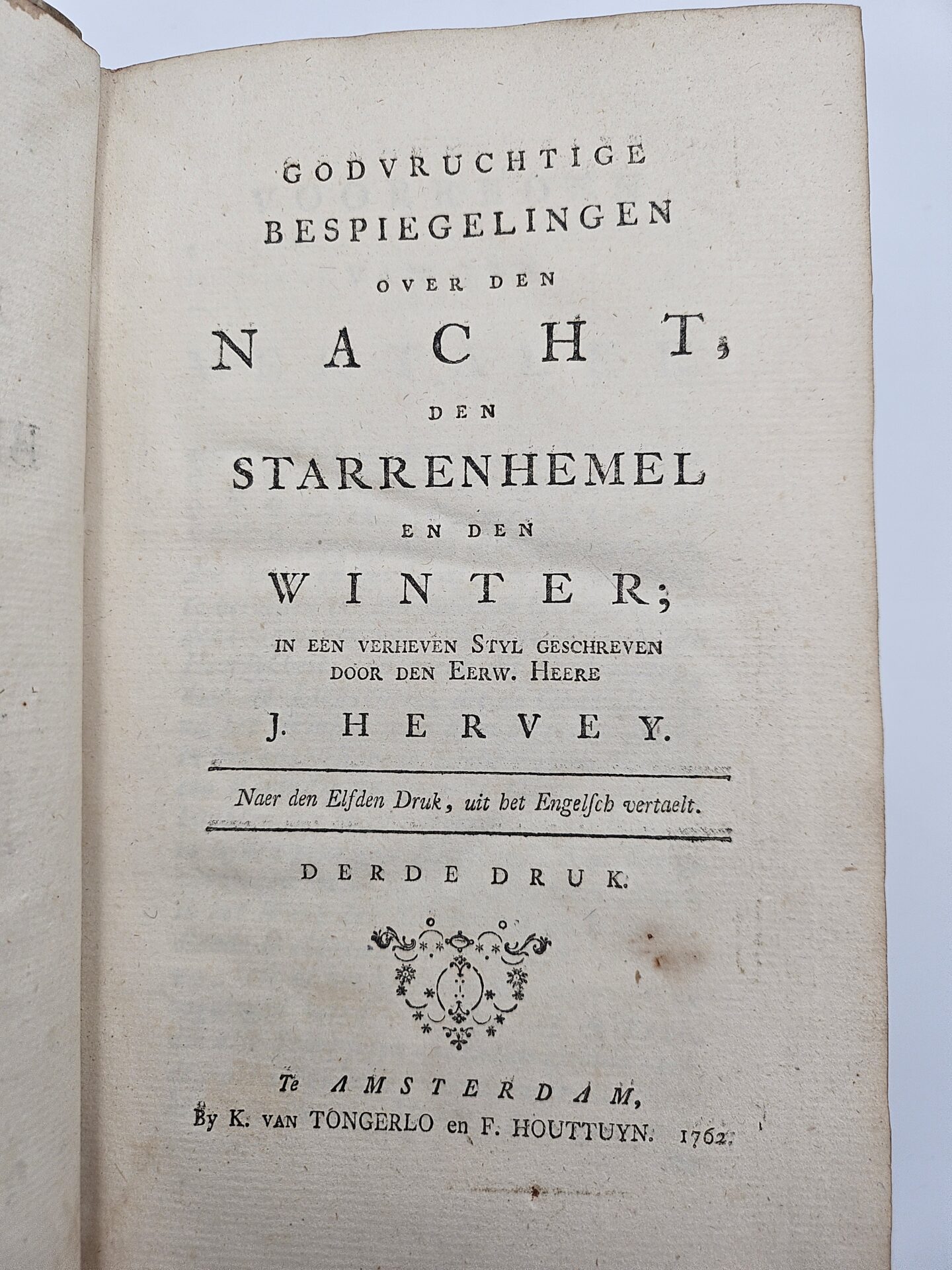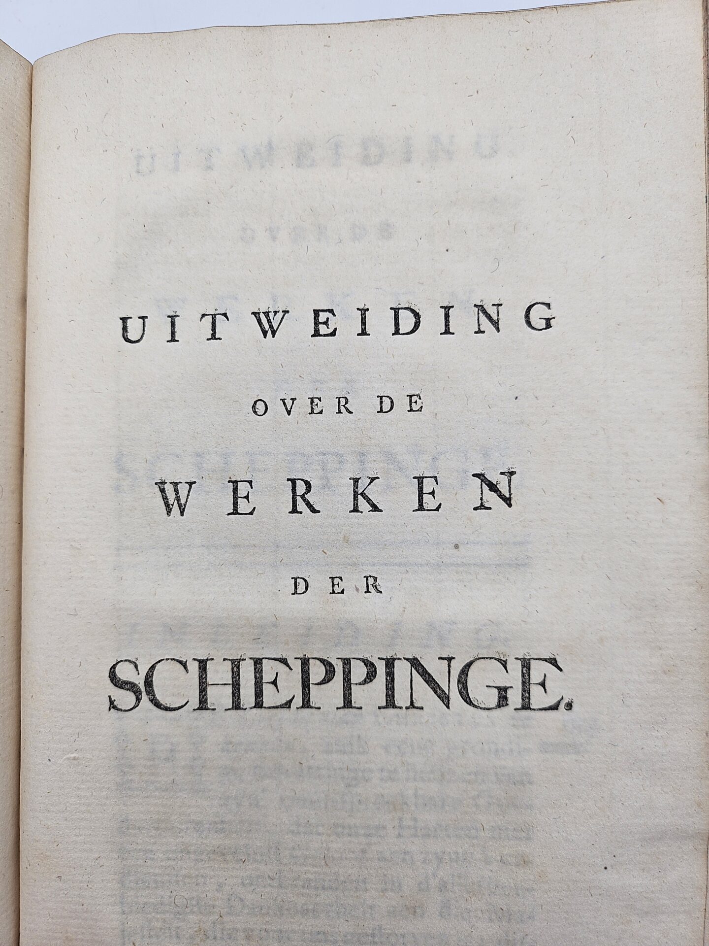2 werken in 1 band, (VIII, 6, 1) 328 (4), (X, 4, 1) 340 p. Origineel Perkament, groot 8°.