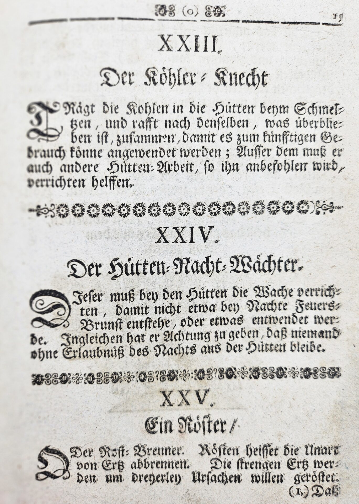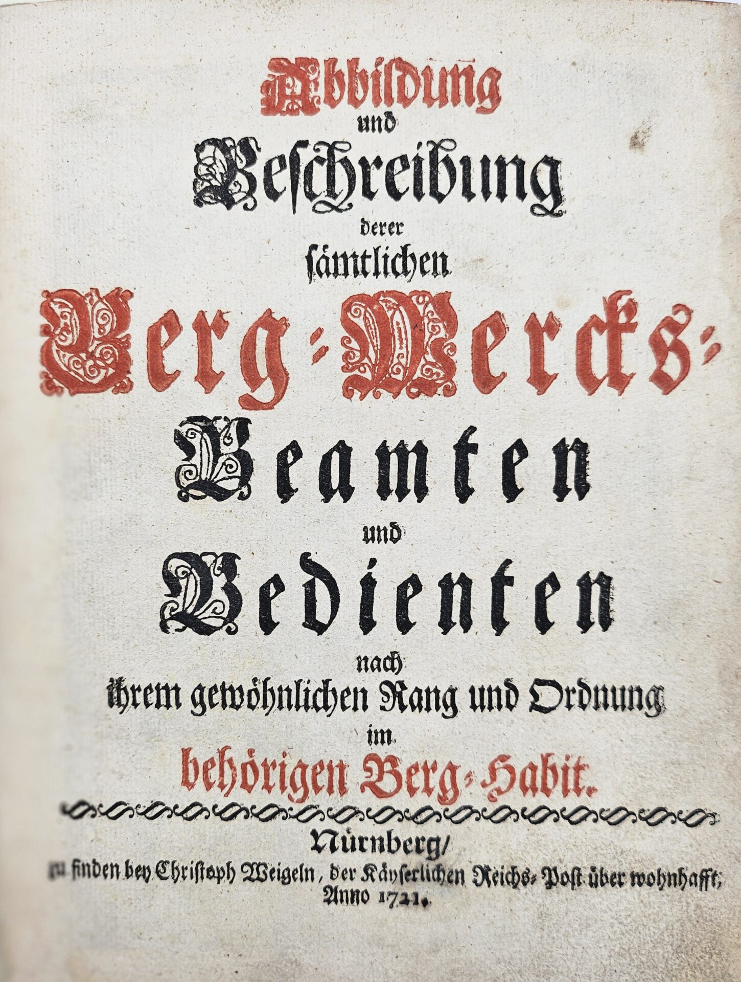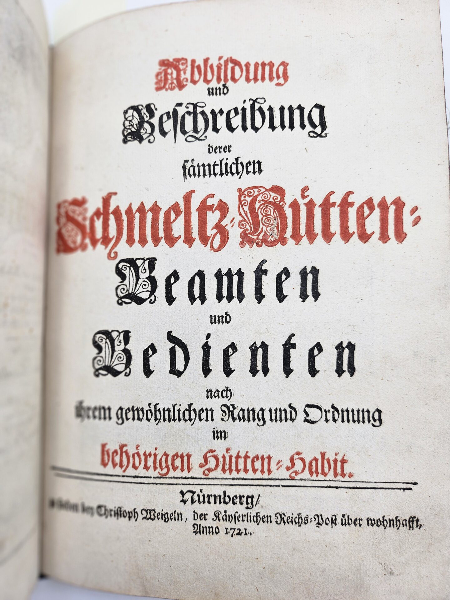 Abbildung und Beschreibung derer sämtlichen Berg-Werks-Beamten und Bedienten nach ihrem gewöhnlichen Rang und Ordnung im behörigen Berg-Habit. – Abbildung und Beschreibung derer sämtlichen Schmeltz-Hütten-Beamten und Bedienten nach ihrem gewöhnlichen Rang und Ordnung im behörigen Hutten-Habit.